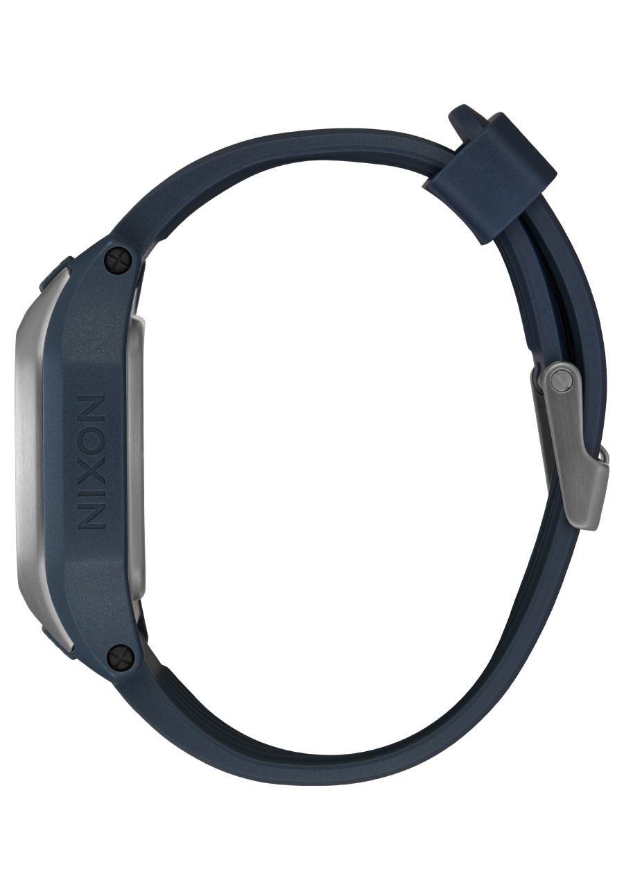 44mm custom injection molded reinforced recycled ocean plastics case and an integrated stainless steel bezel with a 100 meter / 10 ATM water rating. Includes co-molded silicone pushers located at 12 and 6 o'clock, with solid stainless steel screw down caseback.