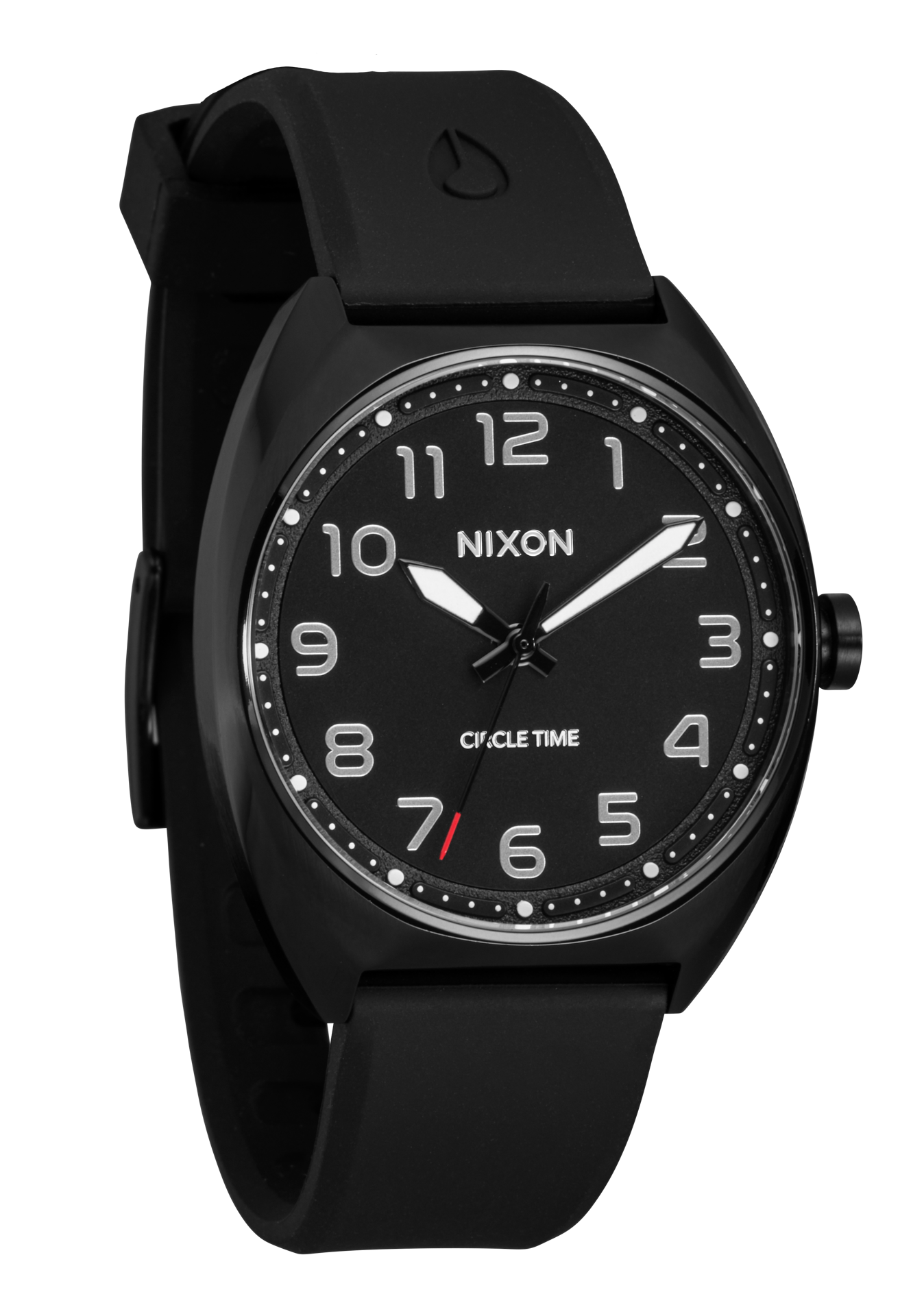 Taking it a step further, the silicone watch band features a locking looper for extra security and quick-release so you can swap bands instantly. The 10 ATM / 100m water rating means a pre-work surf is no problem. Plus, luminescent hands keep the party going with night visibility.