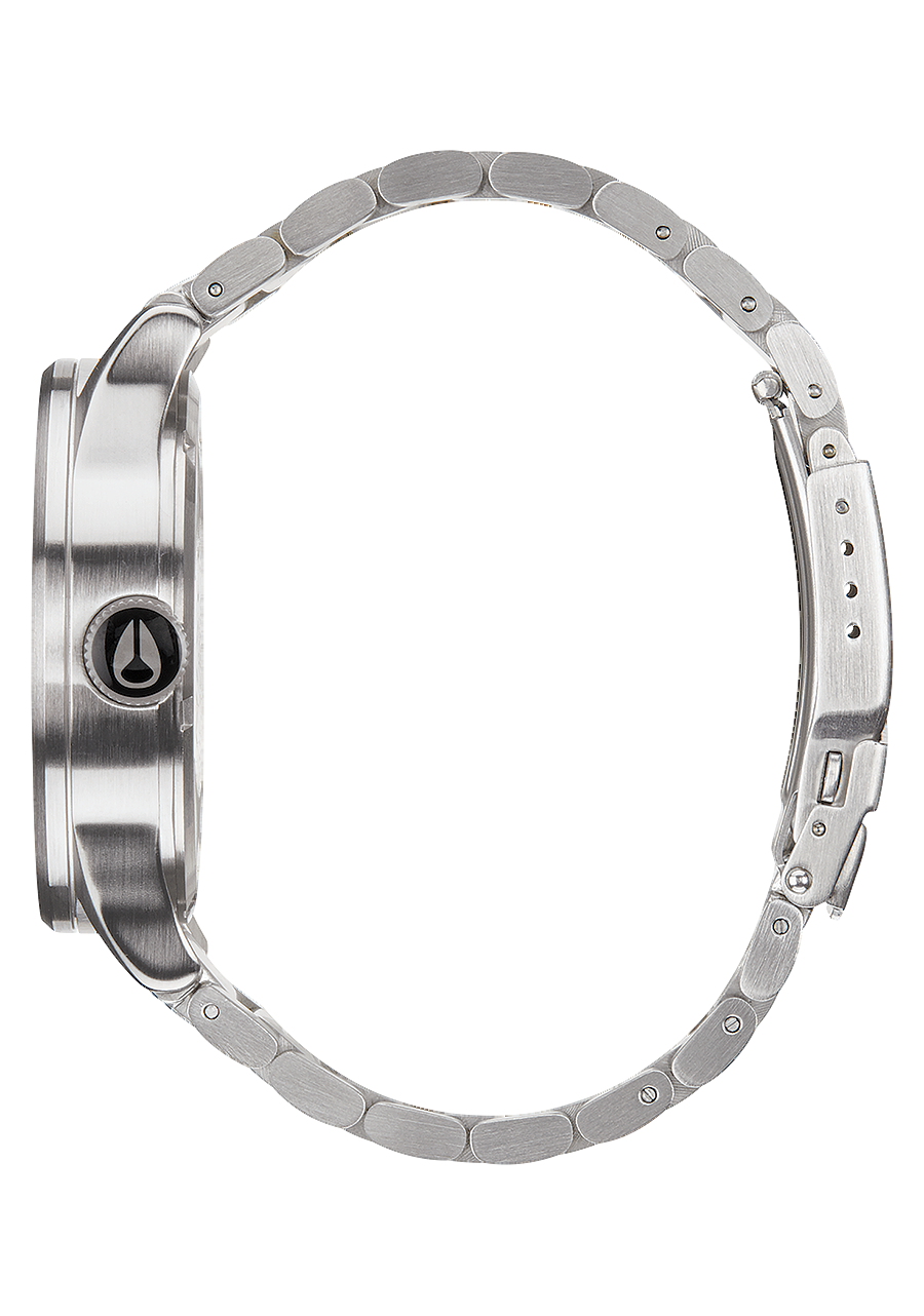 There are two ways to adjust the Sentry Stainless Steel. Smaller adjustments can be made with the micro adjuster and larger adjustments can be made by removing or adding watch links. Visit the Nixon blog to learn how to resize this watch.