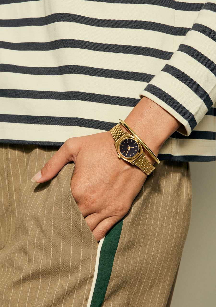 Custom jewelry-style bracelet with a sliding buckle and a modern spin on a classic silhouette that is built to fit almost anyone.