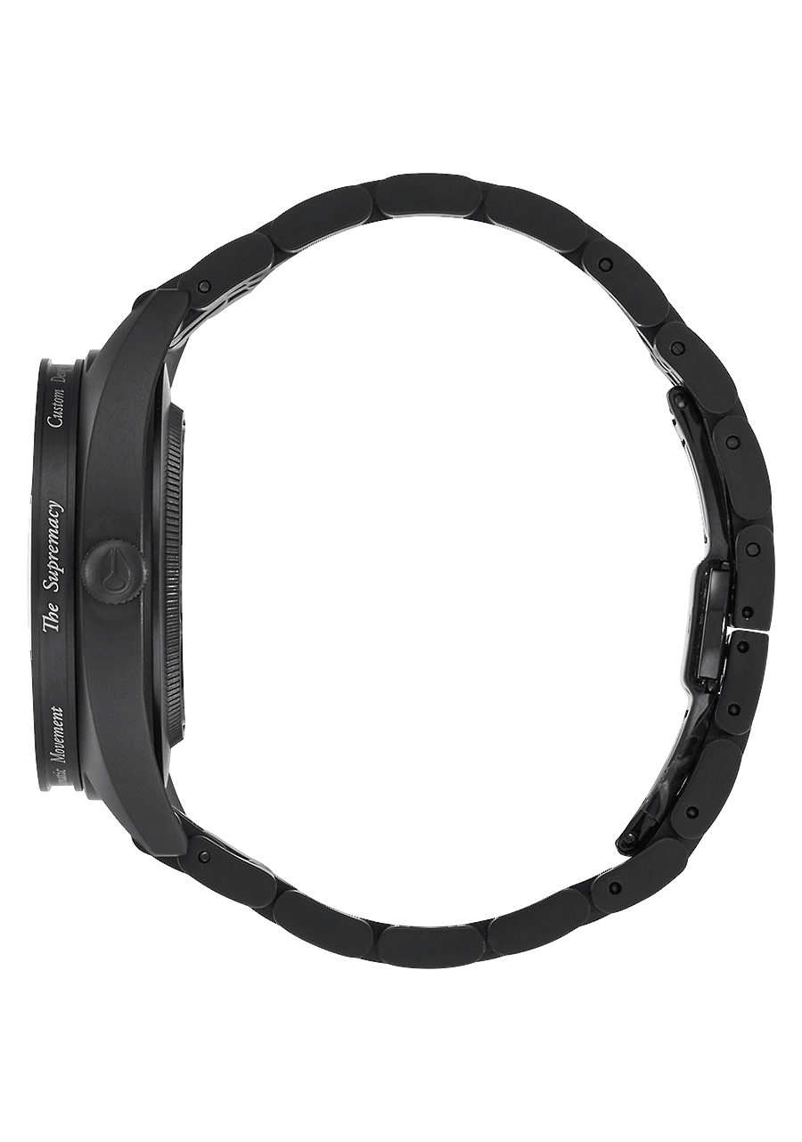 40mm custom solid stainless steel case and fixed bezel with a 100 meter / 10 ATM water rating. Case has a scratch resistant coating and the bezel has sidewall engraving. Includes a triple gasket crown with knurling texture detail and a domed sapphire crystal with antiglare treatment on the underside of the crystal. Each stainless steel screwn down caseback is individually numbered and has a hardened mineral crystal window and spring pin lugs.