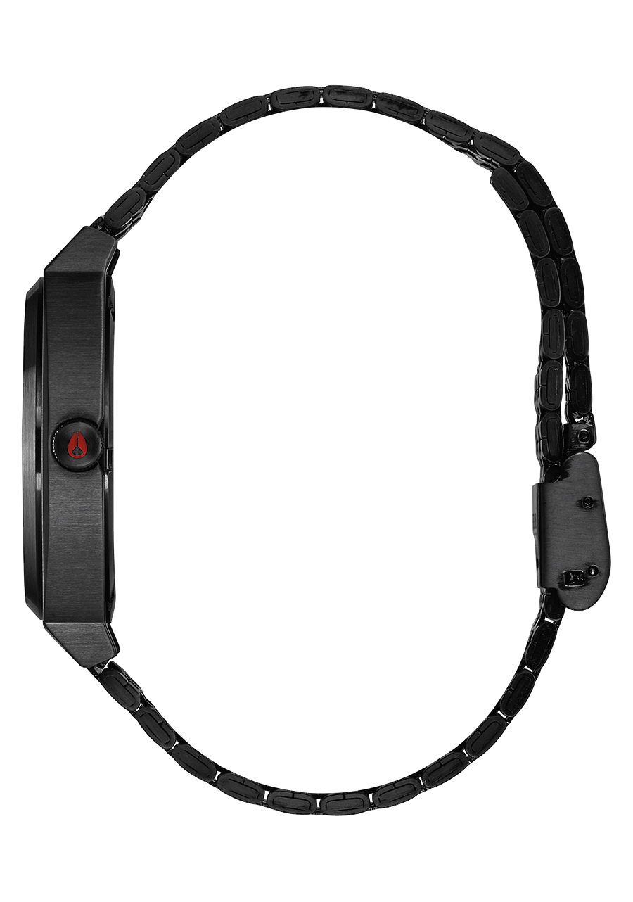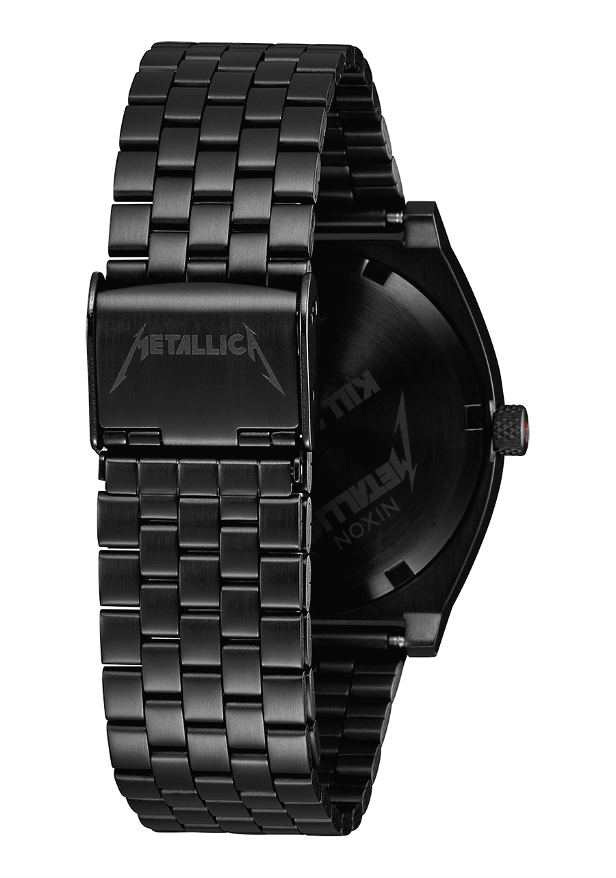 20-18mm tapered custom 5-link stainless steel bracelet and an adjustable stainless steel locking clasp.